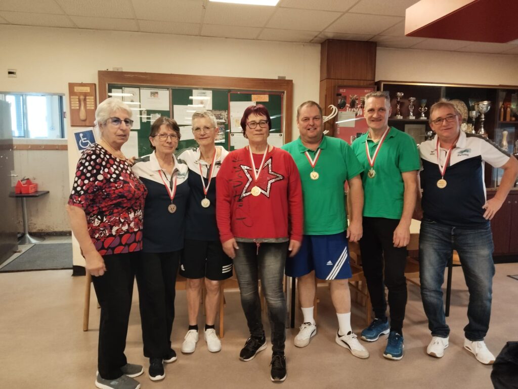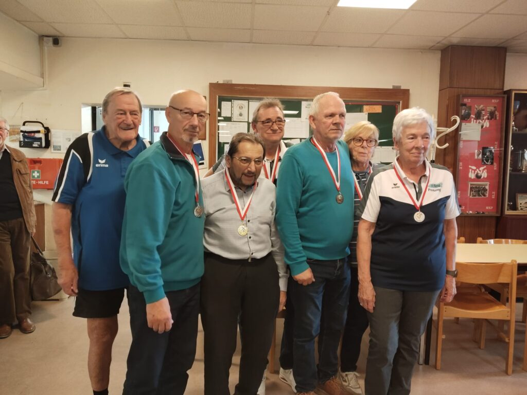 Bei den Damen erhielten TABORSKY Waltraud Gold, ZIMMERMANN Christine Silber und KROKER Ursula Bronze, ebenso die Herren mit Gold an HORVAT Peter, OTT Sepp mit Silber und KUBIS Willi mit Bronze. Herzliche Gratulation dazu!